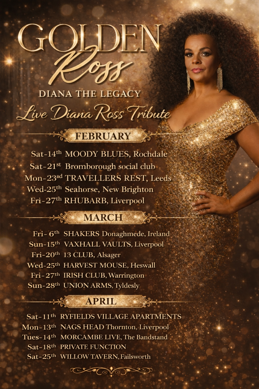 Step into a musical journey through time, celebrating the unforgettable hits of Motowns greatest female icon, Diana Ross.